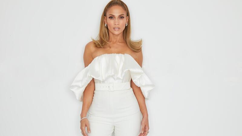 على أبواب الخمسينات.. جينيفر لوبيز أنيقة بجمبسوت أبيض عريض! (صور)