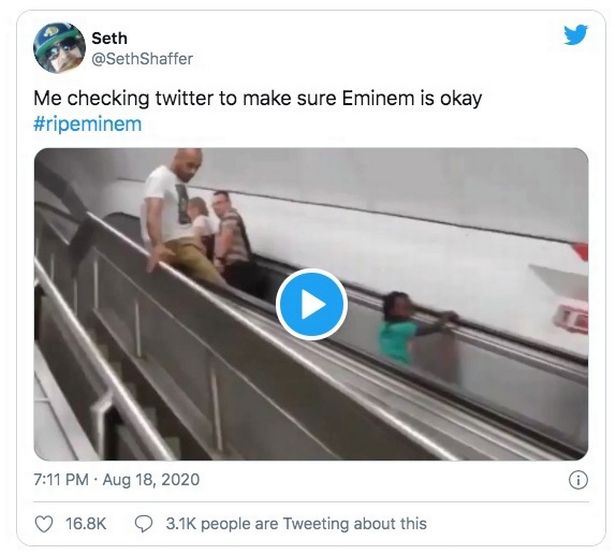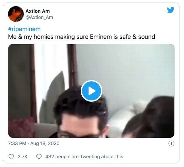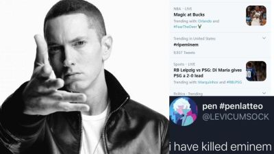 شعر معجبو مغني الراب العالمي "إيمينيم" بالخوف على نجمهم المفضل بعد تصدر هاشتاغ "فالترقد بسلام إيمينيم" موقع التغريدات القصيرة "تويتر"، حيث قرر أحد المستخدمين نشر تغريدة أثارت ضجة كبيرة ثم عمل على حذف حسابه الشخصي.