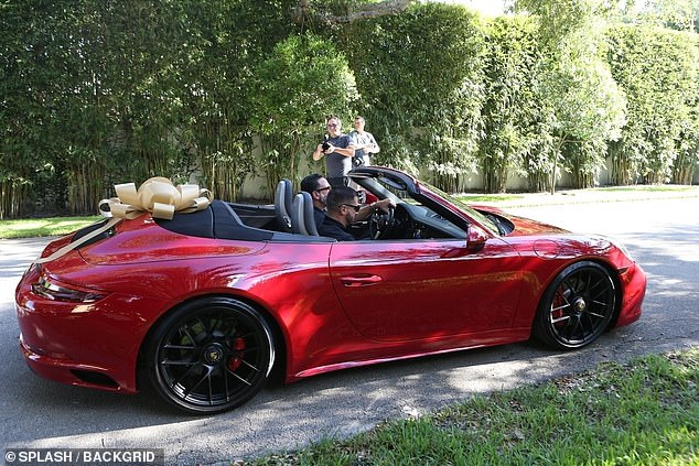 وقد غلَّف "رودريغوز" السيارة، التي تبلغ تكلفتها 120,700 ألف دولار أمريكي، بشريطة ذهبية كبيرة زيَّنت المقدمة.