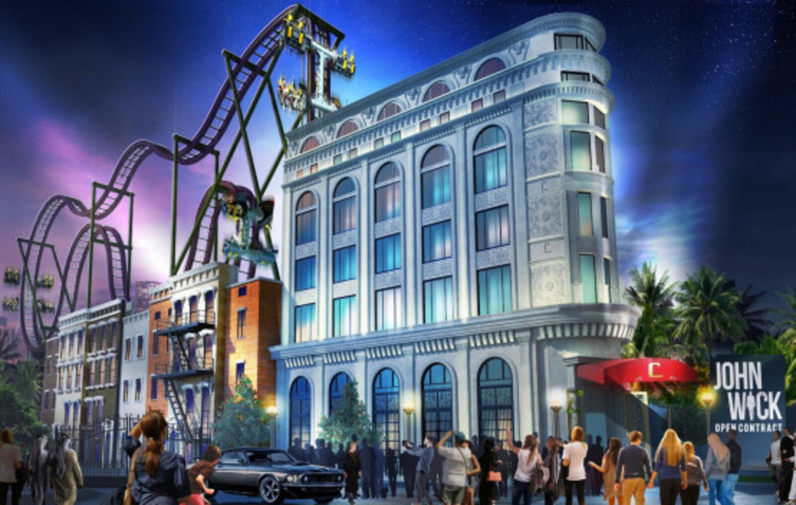 وفقًا لمجلة Variety، فإن أفعوانة 'John Wick: Open Contract' عبارة عن رحلة مثيرة من 10 طوابق سيتم بناؤها داخل مدينة ملاهي Motiongate في الإمارات العربية المتحدة.