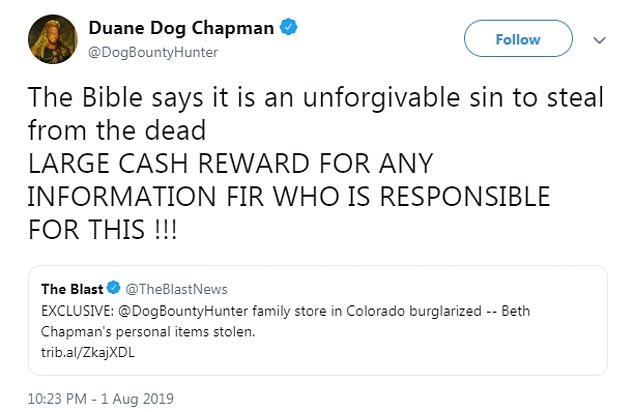 وانتقل دوان إلى حسابه الخاص على تويتر يوم الجمعة، حيث غرّد: "يقول الكتاب المقدّس إن السرقة من الأموات خطيئة لا تغتفر"، كما أضاف هناك مكافأة نقدية كبيرة لأي أحد يفيد بمعلومات عن السارق.