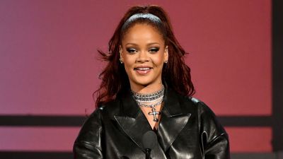 وارتدت النجمة الباربادوسية لانجوري وردي من الدانتيل ونسّقت معه جورباً طويل وحذاء أبيض من الريش كما تزيّنت بالآلىء البيضاء بإكسسواراتها بالإضافة إلى أنها اعتمدت تسريحة من القرن السابع عشر لشعرها بطريقة ملفته.