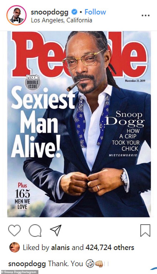 منح نجم الراب "سنوب دوغ" نفسه لقب أكثر الرجال إثارة على قيد الحياة لعام 2019 يوم الخميس الماضي وهو نفس اليوم الذي أعلنت فيه مجلة People أن النجم "جون ليجند" حصل على اللقب.