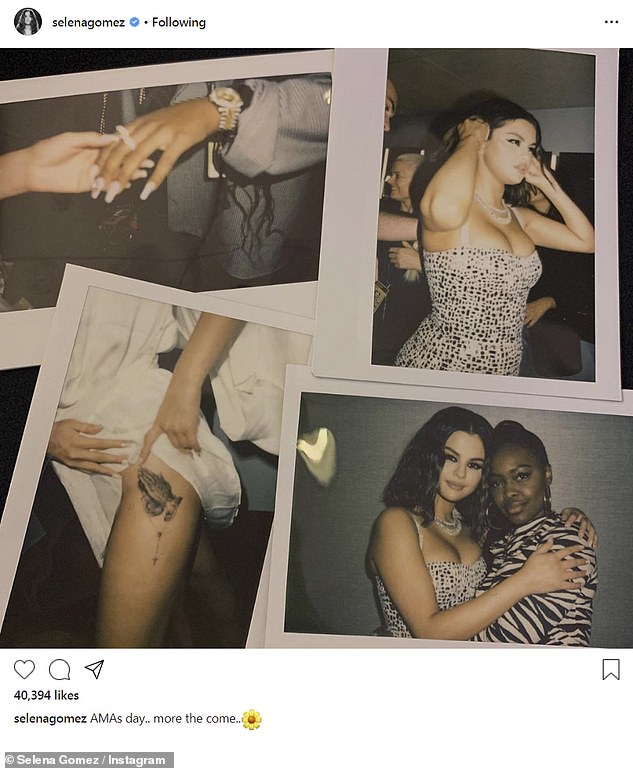 نشرت النجمة "سيلينا غوميز" صورةً كشفت عن حصولها على وشم جديد عند فخذها وذلك قبل حضورها لحفل توزيع الجوائز الموسيقى الأمريكي يوم الأحد الماضي في لوس أنجلوس.