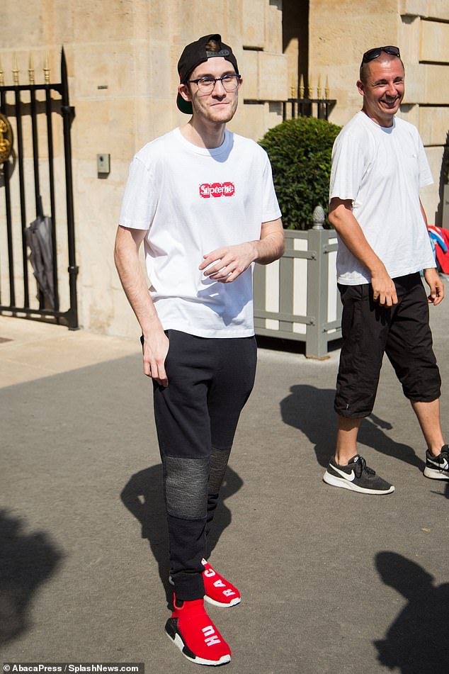 وانضم إليها ابنها رينيه تشارلز البالغ من العمر 18 عاماً، حيث لديه ذوقه الخاص في الأزياء بإرتدائه بلوزة بيضاء وبنطال رياضي، نسّقهم مع حذاء رياضي أحمر اللون، بالإضافة إلى انه وضع قبعة بيسبول سوداء.