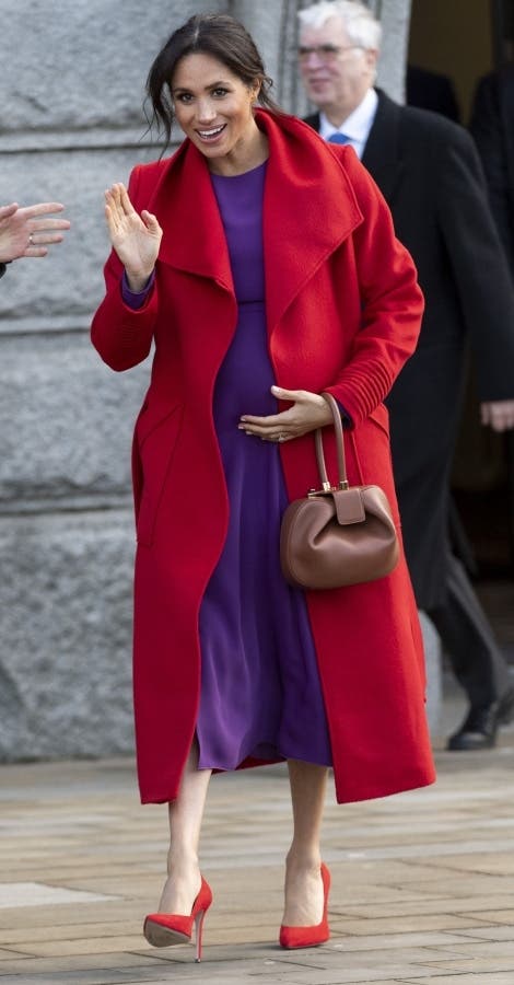استمرت الدوقة في ارتداء الألوان الزاهية طيلة فترة حملها، وهذه إحدى الصور المفضلة لدينا  حينما جمعت اللون الأحمر والأرجواني.
