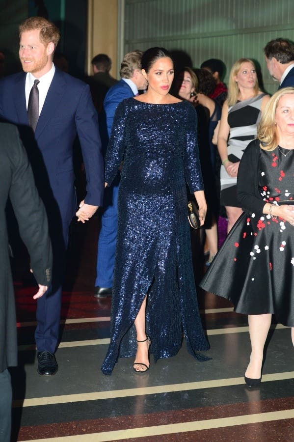 اختارت "ميغان" إطلالة برَّاقة مُستعرضة حملها خلال حفل أقيم في قاعة ألبرت الملكية في عام 2019.