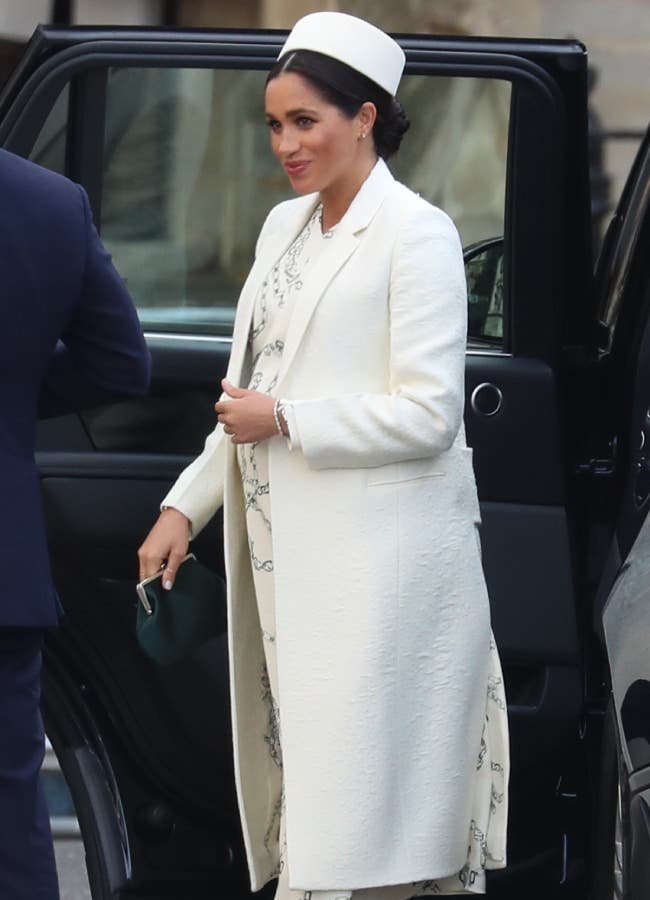 اختارت "ميغان" عدم إظهار طفلها "آرتشي" للعالم على اعتاب المستشفى، بدلًا من ذلك أطلت برفقة زوجها وابنها في قلعة وندسور مُرتديةً فستانًا أبيض أنيق.