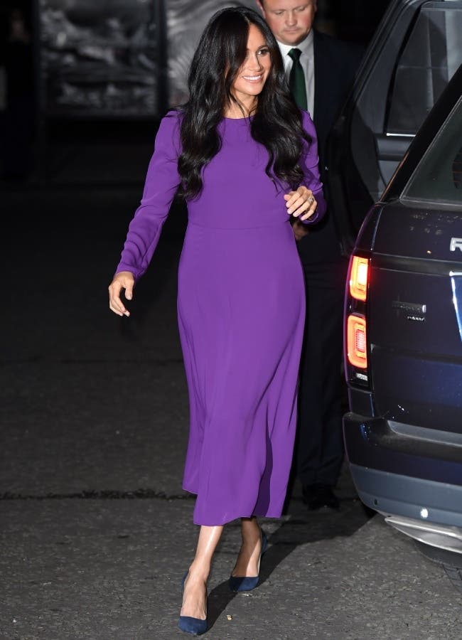 ابتعدت "ميغان" عن أعين الجمهور لبضعة أسابيع، لكنها عادت بقوة مُرتدية فستانًا أرجوانيًا مبهر.