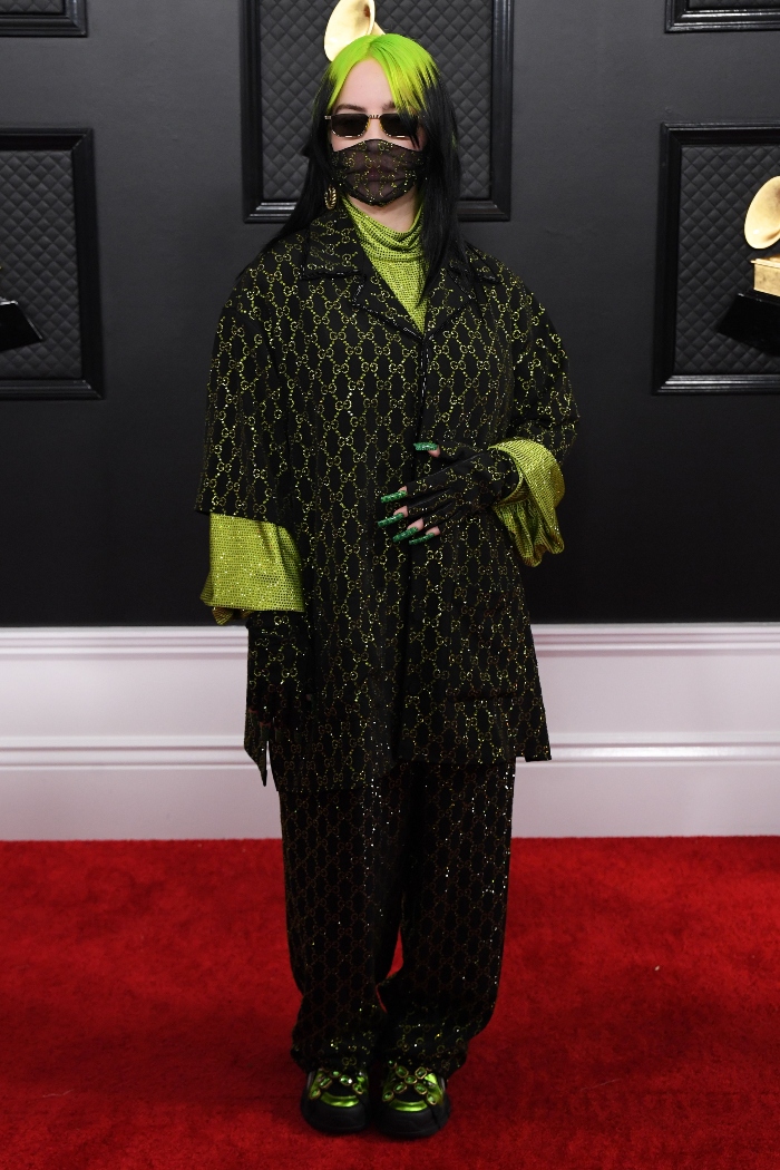 تُثير المغنية الأمريكية الشابة الجدل على الدوام بإطلالاتها الغريبة التي تتس بلمسة من الغموض، وهذا ما فعلته على السجادة الحمراء حينما أطلَّت بطقم أخضر فضفاض أكبر من مقاسها الفعلي من توقيع دار الأزياء الإيطالية "غوتشي"، وأكملت إطلالتها بشعر باللون الأخضر الفسفوري، وقناع أسود، بالإضافة إلى نظارة شمسية سوداء، وأظافر مستعارة مطليَّة باللون الأخضر.