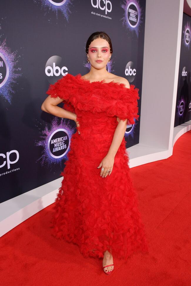 خطفت الممثلة الاسترالية ونجمة مسلسل 13 Reasons Why الأنظار لإطلالتها النارية من توقيع العلامة التجارية الأمريكية "رودارت"، فاختارت ارتداء فستان أحمر أوف شولدر زُيِّن بالكامل بالريش مانحًا إياها لمسة استعراضية أنيقة.