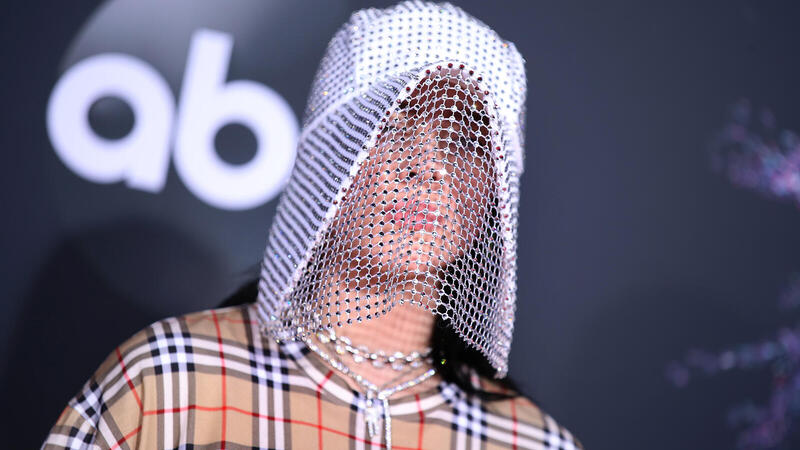 تُعرف المغنية الأمريكية الشابة بغرابتها وتمييزها عن غيرها أكان ذلك في فيديوهات أغانيها المصوَّرة أو أزيائها الهيبيَّة الغريبة، وقد اختارت العلامة التجارية البريطانية "بربري" للوصول إلى هدفها مُرتديةً أشبه ما يكون ببيجاما كاروهات مؤلفة من بنطال عريض وقميص فضفاض بأكمام متوسطة الطول مشبوكة بأكمام مُخرَّمة بيضاء وُمرصَّعة بالكريستال البرَّاق، وما زاده غرابة غطاء الرأس المخرَّف الذي أخفى وجهها بالكامل.