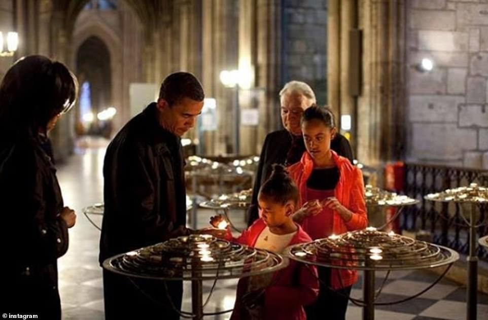 وخلال وقت لاحق، انتقلت السيدة أوباما إلى وسائل التواصل الاجتماعي، لتنشر عبر حسابها الخاص "أشعر بآلام في قلبي حزناً وتضامناً مع الشعب الفرنسي"، كما نشرت صورة قديمة لها ولزوجها باراك أوباما وهما يضيئان الشموع في الكاتدرائية، وقالت "لن أنسى أبداً أول مرة دخلت فيها إلى كاتدرائية نوتردام، كنت في رحلة مدرسية إلى باريس، كنت مراهقة وقتها ولم أرَ الكثير خارج الحي الذي نشأت فيه، لكن عندما دخلت الكاتدرائية أخذت أنفاسي بفنها وتاريخها وروحها، كان الشعور لا يوصف، وفي كل مرة كنت أزورها أشعر بذلك"، وأضافت "إن قلبي يتألم مع الشعب الفرنسي، لكني أعلم أنها سوف تذهلنا قريباً".
