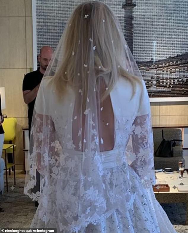 وصرّح نيكولاس بأن الفستان استغرق أكثر من 350 ساعة لتنفيذه، وزيّن بـ50,400 حبة من الكريستال، وأما الطرحة فقد استغرقت 1,050 ساعة للصنع.