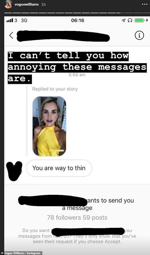 لم تستطع عارضة الأزياء الإيرلندية "فوغ ويليامز" التزام الصمت إزاء الانتقادات والتنمر الإلكتروني التي تتعرض له من قبل رواد مواقع التواصل الاجتماعي بشأن نحافتها المُفرطة.