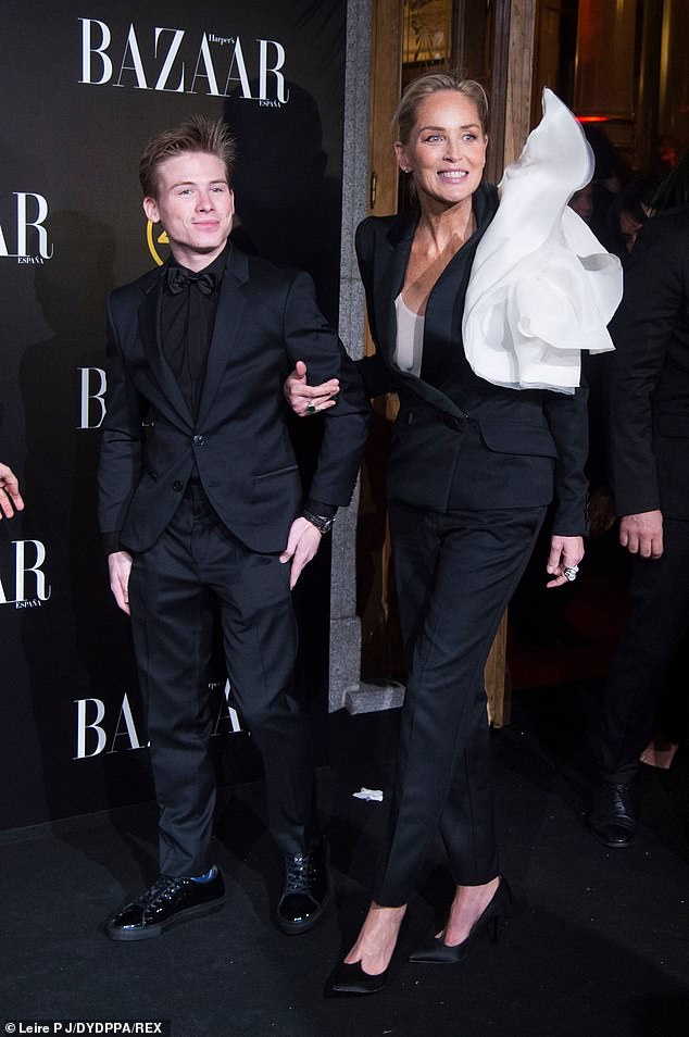 وبدأت شارون بإرسال القبلات على الجماهير الذين تجمعوا خارج الحدث بينما كان ابنها المراهق رُوان بجانبها حيث كان يرتدي بدلة سوداء مطابقة لما ارتدته والدته مع قميص وربطة عنق سوداء.