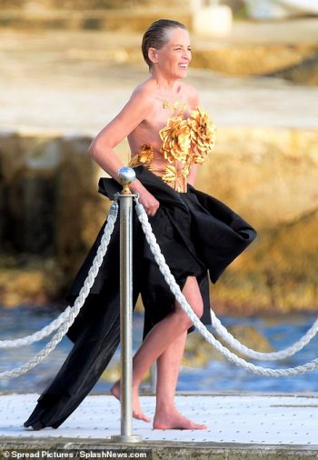 غطت صدرها العاري بوردة ذهبية.. شارون ستون بجلسة تصوير مثيرة جنوب فرنسا!