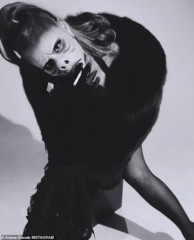 وظهرت وهي تمسك السيجارة بيديها المختبئتين في قفاز أسود، مع تصفيفة ذيل الحصان المرتفع.