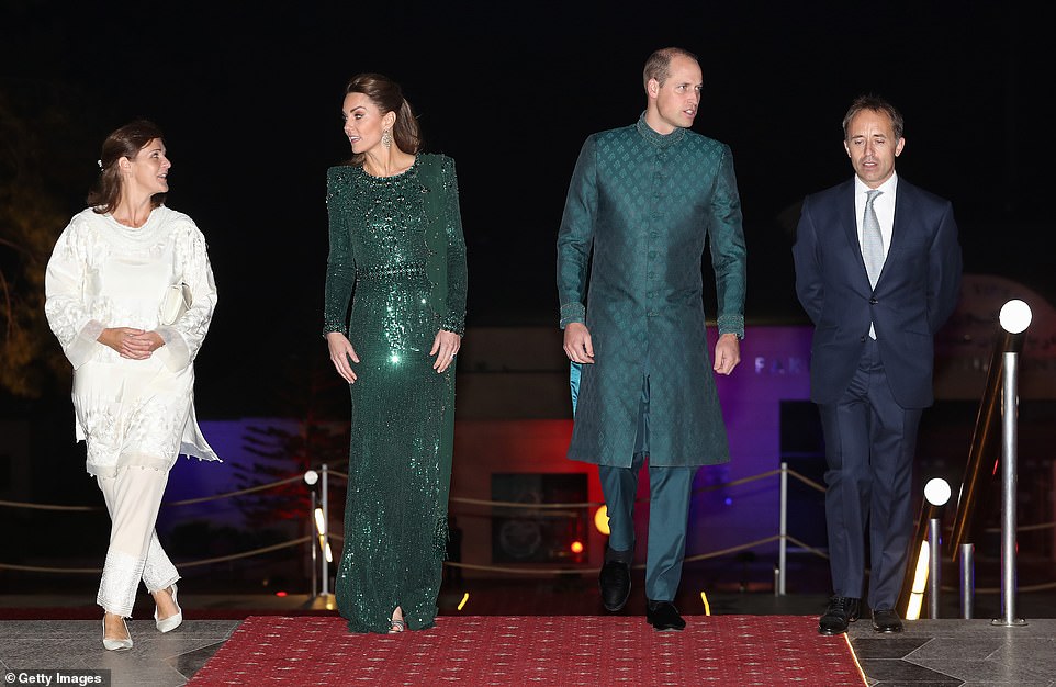 وظهر الأمير ويليام وكيت بإطلالتين تقليديتين فاختار دوق كامبريدج زي شيرواني الجذاب باللون الزمردي وهو عبارة عن قميص طويل مع بنطال مطابق وعادةً ما يتم ارتداءه في المناسبات نسّقه مع حذاء أسود.