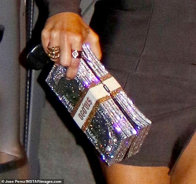 ونسَّقت "لوبيز" إطلالتها بحقيبة يد مُرصَّعة على شكل أوراق نقدية من مجموعة تصميمات "جوديث ليبر" بقيمة 5.695 دولار أمريكي، وانتعلت حذاء ذي كعب عالٍ ذهبي، وأسدلت شعرها الأشقر الحريري على جانبي كتفها.