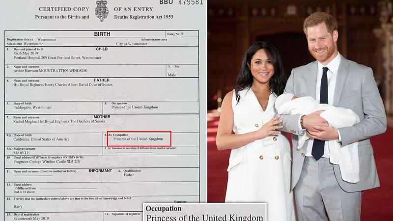 أضافت  دوقة ساسكس سابقًا "ميغان ماركل" والأمير "هاري" المزيد من البريق إلى شهادة ميلاد ابنهما "آرتشي" عن طريق محو الدوقة اسمها الأول وإضافة لقبهما الملكي.