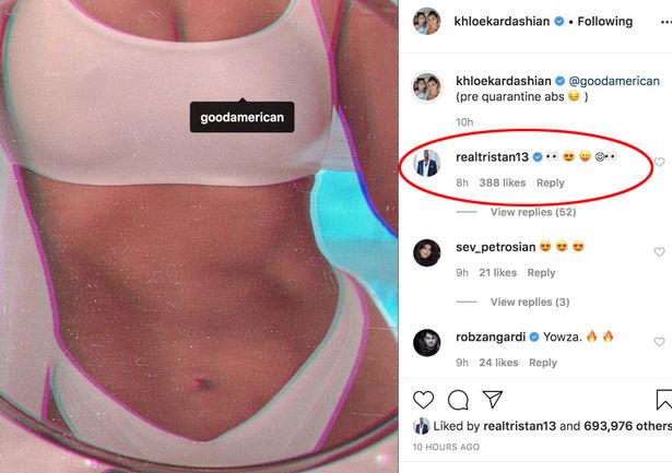 وكان من بين المعجبين بصورتها "تومبسون" الذي علَّق على الفور بسلسلة من الرموز التعبيرية بما في ذلك عيون على شكل قلب حب أحمر، ولسان.