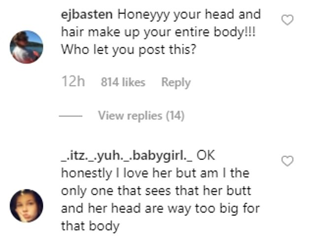 وكانت أغلب التعليقات على الصورة سخريةً على شكلها، حيث قال أحدهم "عزيزتي رأسك وشعرك يشكلون جسمك كله! من الذي سمح بنشر هذه الصورة"، وأضاف آخر "حسناً أنا أحبها، لكن هل أنا الوحيد الذي يرى أن رأسها أكبر بكثير بالنسبة لهيئتها"، أما أحد المتابعين فعلّق على كتابة كلوي على الصورة بأن لديها رأس مزركش، حيث قال "هل تغامرين برؤوس مزركشة الآن؟".