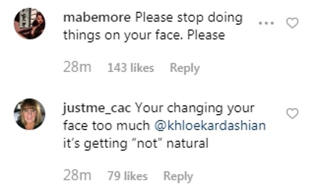 وأكّد شخص ثالث قيام كلوي بالعديد من العمليات التجميلية فقال: "عمليات تجميلية كثيرة للغاية لا يمكن التعرف عليها أين كوكو؟"، ووافقه رابع الرأي بقوله: "هل هذه حقاً كلوي لا استطيع التعرف عليها؟".