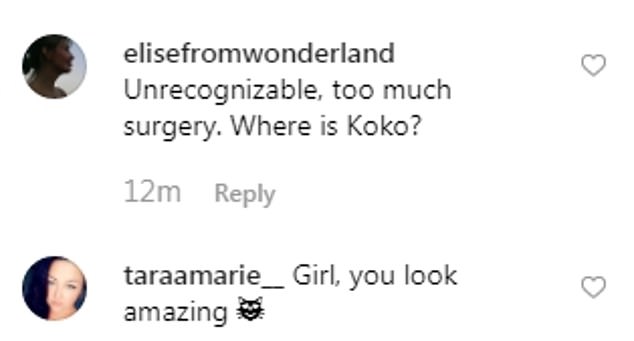 وانتقل المتابعين إلى انتقادها بأن شكلها قد تغيّر كلياً بسبب استمرارها القيام بعمليات تجميلية لأنفها فعلّق أحد الأشخاص: "من فضلك توقف عن فعل العمليات بوجهك رجاءً"، بينما قال آخر: "إن تغيير وجهك كثيراً سيصبح شيئاً غير طبيعي".