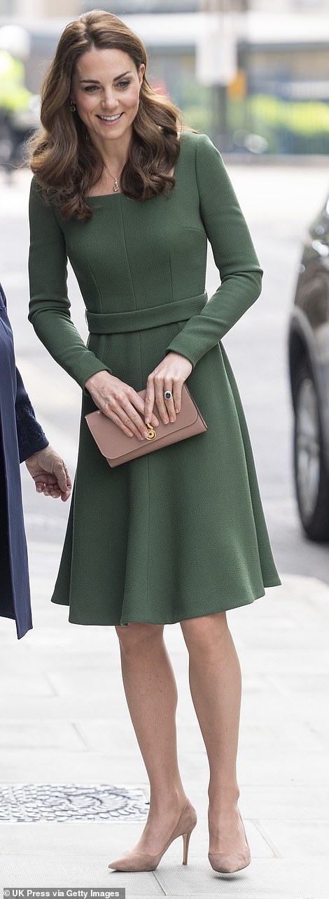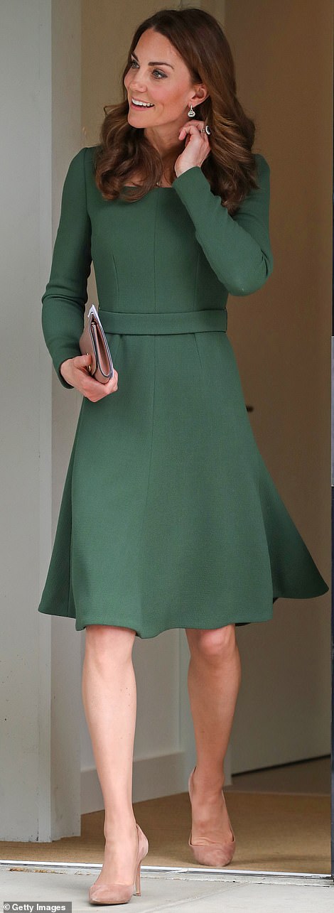 ظهرت كيت بإطلالة ملكية أنيقة، حيث ارتدت فستان أخضر ضيق، من مجموعة إيميليا ويكستيد، ,وبقصة النفاش من أسفل، كما يبلغ طوله حد الركبة، ونسقت معه حقيبة يد توتية تكلفتها 495 جنيه استرالي، وحذاء بكعب عالٍ بتوقيع جيانفيتو بقيمة 566 جنيه استرليني، وأكملت إطلالتها الفاخرة بأقراط ألماسية من ماركة كيكي ماكدونو.