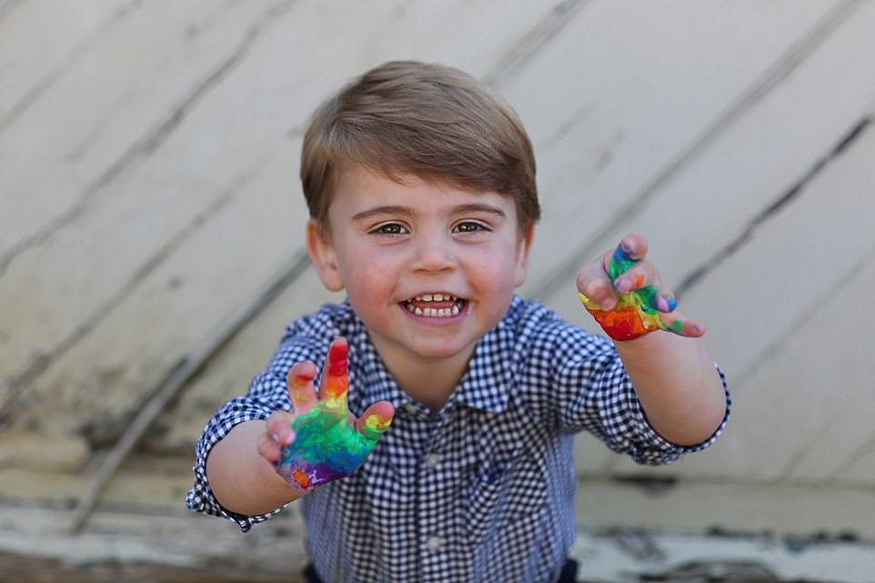 ويظهر "لويس بشعره  الناعم وابتسامته غاية في اللطافة، ويبدو أن والديه الملكيين يبقيانه منشغلًا في رسم قوس قزح احتفالًا وتكريمًا لمنظمة خدمة الصحة العالمية، فتظهر يداه تغطيهما ألوان  قوس القزح بينما يحدِّق في عدسة الكاميرا وابتسامة لطيفة على وجهه.