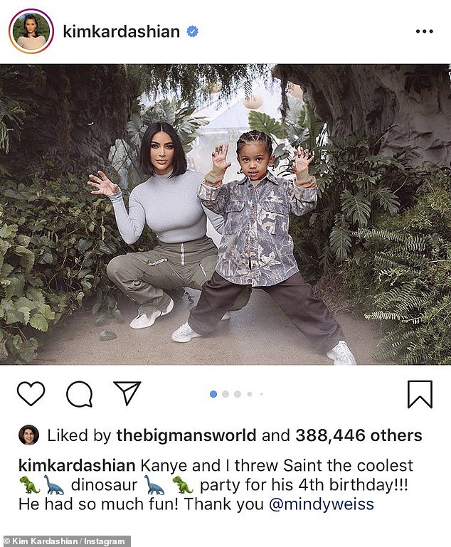 احتفلت نجمة تلفزيون الواقع "كيم كارداشيان" بعيد ميلاد ابنها "سانت" مُبكِّرًا عبر العودة في الزمن إلى عصر الديناصورات.