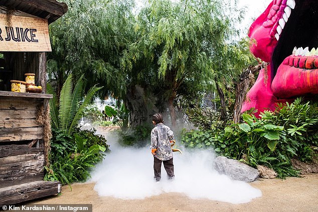 شاركت "كيم كارداشيان" متابعيها الذين يصل عددهم 154 مليون متابع عبر موقع "إنستغرام" سلسلة صور ومقاطع فيديو لديكورات الحفل المبهر الذي اتخذ طابع عصر الديناصورات، حيث حوَّلت الفناء الخلفي لعقارهم الفاخر في مدينة كالاباساس بولاية كاليفورنيا إلى أدغال مع إضافة نبات السرخس والشجيرات العملاقة، بالإضافة إلى أعشاش طيور عملاقة مُزيَّنة بوسائد بيضاء على شكل بيوض.