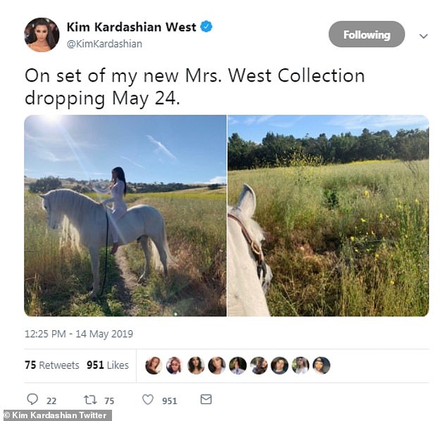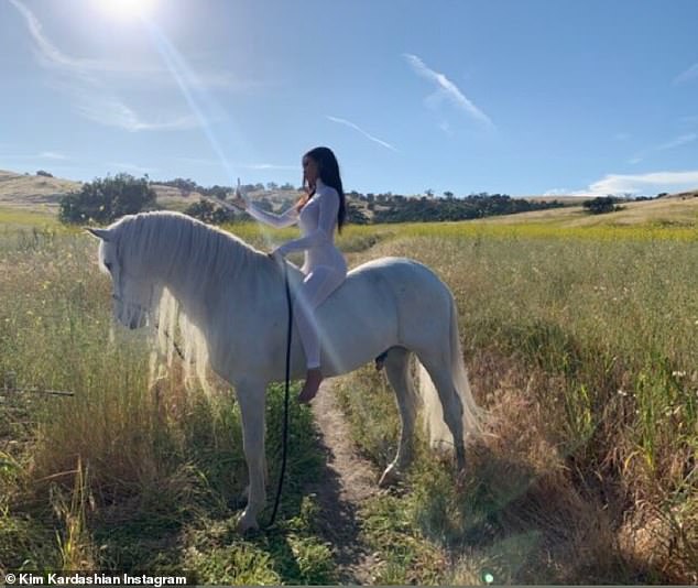 تظهر "كيم" في جلسة التصوير الخيالية على ظهر حصان أبيض جميل مُرتديةً جامبسوت أبيض ذي ياقة عالية وأكمام طويلة مُبرزةً منحنيات جسدها المُثير، في حين أسدلت شعرها الأسود الحريري وراء كتفها، وأكملت إطلالتها بمكياج من الدرجات الترابية مُبرزةُ سحر عينيها البُنيَّة.