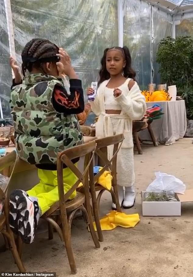 وعلّقت كيم أثناء عرض الفيديو بقولها: "حفل ديناصور سانت اليوم"، ويبدو واضحاً في مقطع الفيديو أنه كان لديها معجب كبير من مجموعة خط ملابسها الجديدة التي لم يتم إصدارها بعد وهي ابنتها نورث التي كانت ترتدي توب وبنطال مع روب باللون الأبيض، حيث علّقت كيم على ذلك: "نورث وهي ترتدي المجموعة المريحة".