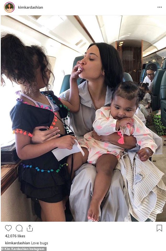 وبعد الإحتفال، نشرت نجمة التلفزيون الواقع "كيم كارداشيان" صورةً لها مع ابنتها نورث وابنة أختها ترو من الطائرة الخاصة بها، أمس الثلاثاء.