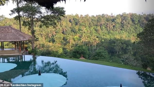 وخلال صور نشرتها عبر حسابها الخاص يومي السبت والجمعة، ظهرت الفيلا الرائعة في منتجع أمانداري، والتي كانت كيم وزوجها يقيمان فيها، متضمنة مسبحاً خاصاً مع إطلالة على الغابة، وعلّقت عليها "كم هي جميلة!".