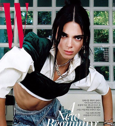 فنشرت كيندال أمس الأحد صورةً لها على غلاف مجلة  W Korea لعدد أكتوبر المقبل، حيث تم التقاط صورة الغلاف من قبل المصوّر هوغو كومت.