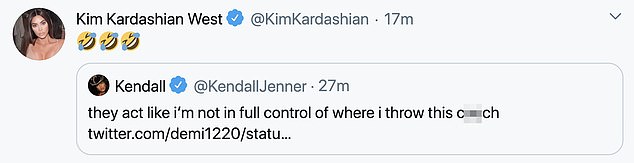 وكانت شقيقتها الصغرى "كايلي جينر" أول من أثنى على ردها، فكتبت: "تغريدة العام"، ثم تبعتها شقيقتيها "كيم" و"كلوي".