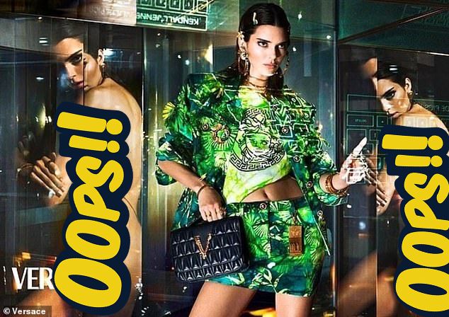 وفي صورة أخرى ملفتة لعارضة الأزياء كيندال ظهرت وهي عارية تماماً في خلفية الصور بينما كانت تغطي صدرها بيديها وهي تقف أمامهم مرتدية الملابس من نفس المجموعة.