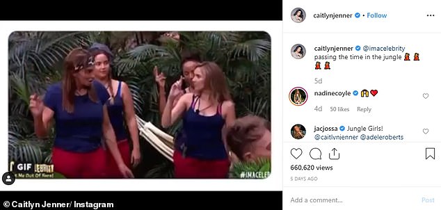 وبعد عشر أيام من تواجد "كاتلين" في الغابة ومعاناتها من التحديات الصعبة المجهدة نفسيًا وبدنيًا، أبدت الشقيقتان إعجابهما بمنشورات شاركتها حبيبتها "صوفيا هاتشنز" عبر حسابها على موقع "إنستغرام"، فقد أعجبت "كيندال" بمقطع فيديو لـ"كاتلين" تتعلم حركات فرقة Girls Aloud الراقصة. بينما أعجبت "كايلي" بصورة تجمع والدها وحبيبته وكلابهم، أرفقت بتعليق: "نحن ندعمك"..