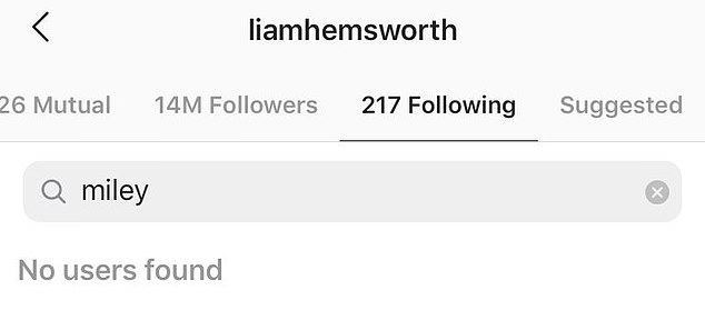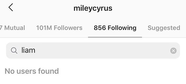 بالإضافة إلى ذلك، سرعان ما رد ليام على مايلي، بإلغاء متابعتها هي أيضًا على "إنستغرام"، في حين أن كاتلين لا تزال تتابعها، وعلى الرغم من أنه لم يتضح متى فعلت مايلي ذلك، إلا أن المعجبين كانت ملاحظتهم قوية لحركة مايلي.