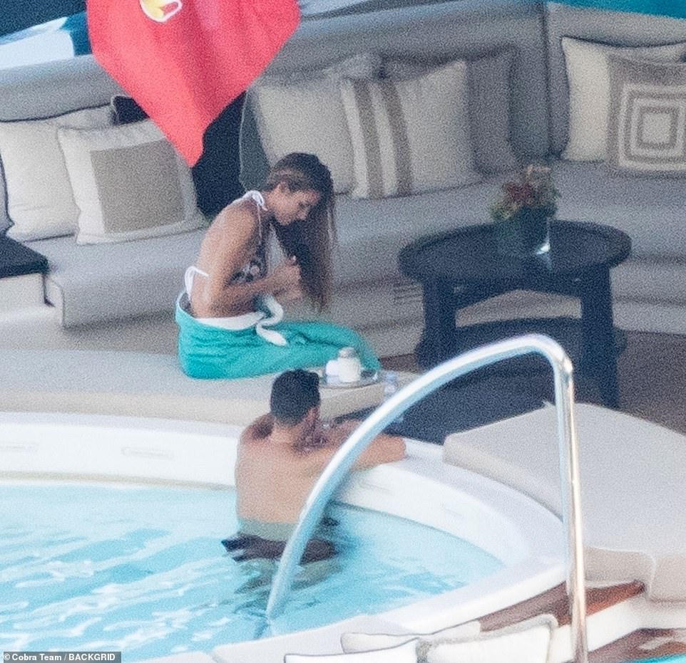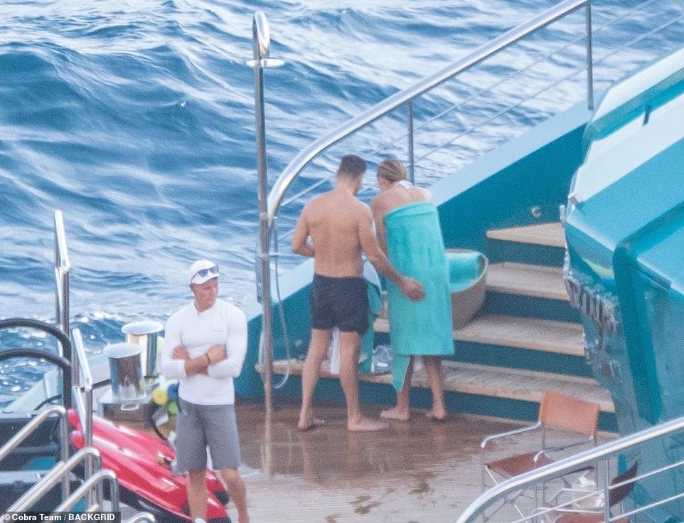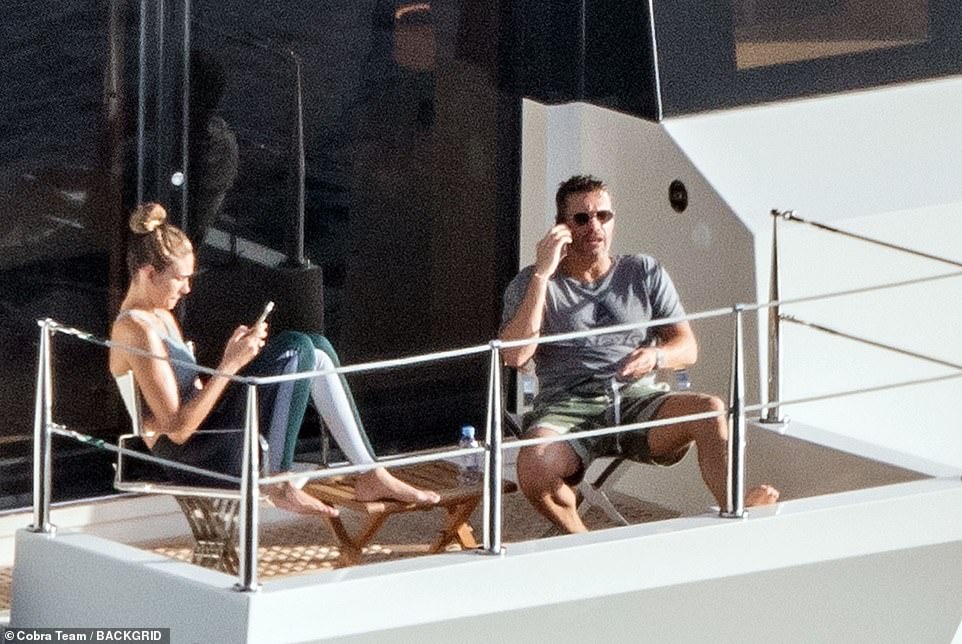 وشوهد ريان وشاينا يستمتعان بأشعة الشمس، بينما كان كل منهما مشغول بهاتفه المحمول، بينما في لقطة أخرى يشعران بانتعاش البحر وهما يسبحان.