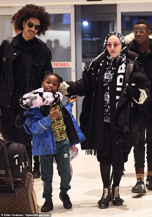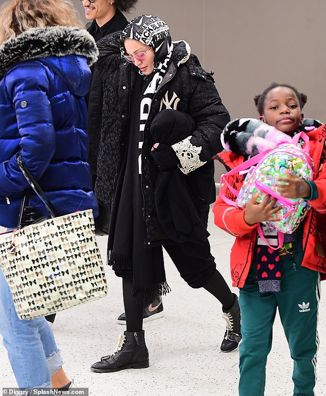 فتم مشاهدة النجمة وهي متجهة إلى مطار إف كينيدي في نيويورك وهي في طريقها إلى لندن برفقة ابنتيها المتبنيتين إستر وستيل يوم أمس الجمعة.