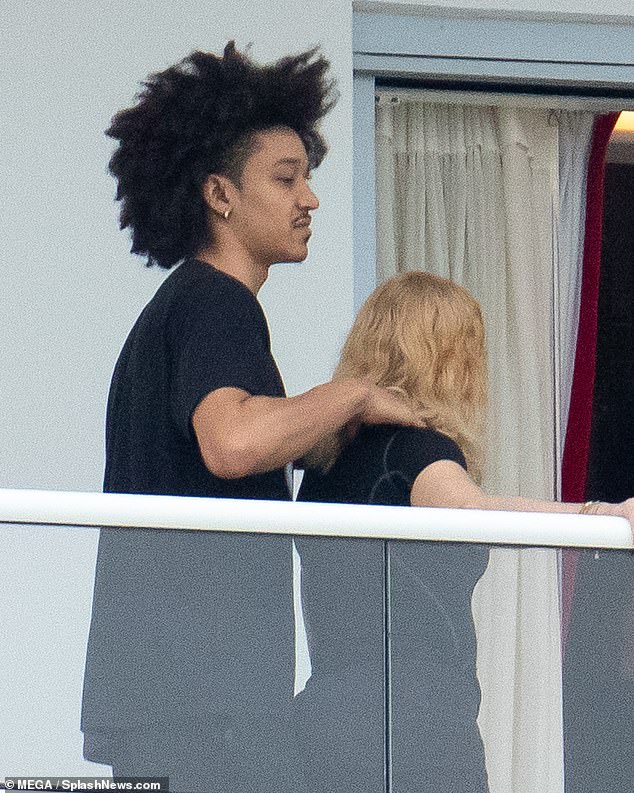 رصدت عدسات الباباراتزي "مادونا" (61 عامًا) برفقة حبيبها "أهلاماليك ويليامز" وقافين على شرفة إحدى الفنادق بوضعية حميمة نوعًا، فنرى يدا "ويليامز" تلتف حول خصر "مادونا"، وصرّح مصدر أن النجمة منحته قبلة أن يهمَّ بتدليك كتفيها.