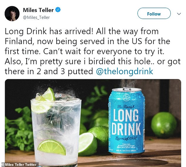 أصبح النجم "مايلز تيلر" رئيساً مشاركاً للعلامة التجارية لشركة الكحول الفنلندية The Long Drink كاشفًا عن هذا الأمر خلال حدث تذوق في مدينة نيويورك.