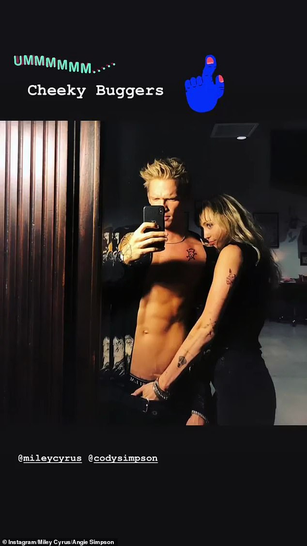 بعد أسابيع قليلة عن إعلان علاقتهما، شاركت "مايلي" متابعيها صورة تجمعها بحبيبها الجديد، حيث تظهر عي واقفة إلى جانبه ويدها داخل لباسه التحتي، بينما يمسك هو الهاتف في إحدى يديه، ويفتح قميصه لاستعراض عضلات بطنه وصدره العاري.
