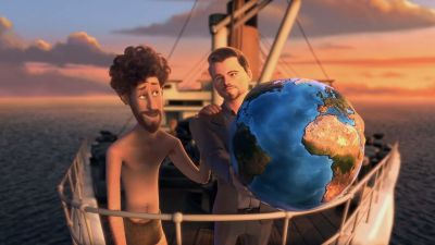 في إحدى المشاهد، يظهر "ليوناردو دي كابرو" في مقدمة سفينة التيتانيك مُمسكة بالكرة الأرضية كمحاكاة لمشهده الرومنسي برفقة "روز".