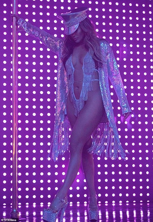 أدهشت النجمة العالمية "جينيفر لوبيز" الجمهور في بداية فيلم Hustlers عندما ظهرت بملابس داخلية فضية لامعة وجاكيت مطابق نسّقته مع كعب عال وقبعة من نفس النوع.