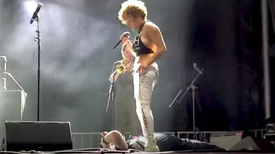وقع الحادث في 11 نوفمبر، فبينما كانت الفرقة تؤدي أغاني الروك الصاخبة، شوهدت صوفيا أوريستا تخلع سروالها وتنحني فوق أحد المعجبين المتحمسين، ثم تبولت على على وجهه مُقدمةً شكلًا جديدًا من البث المباشر.